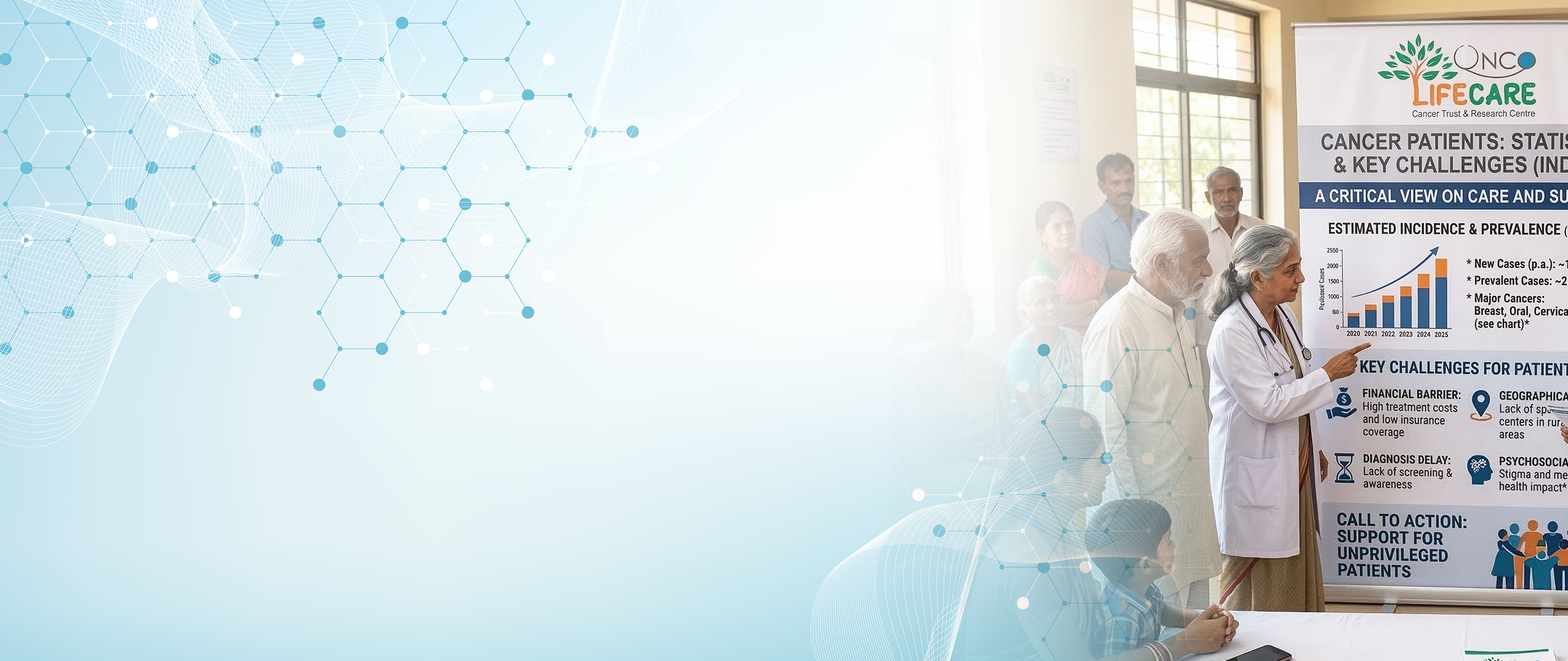Behind every camp, every screening day, and every patient we guide, there is a reality we cannot ignore: cancer in India is often detected late, and screening participation remains extremely low. This combination turns a treatable disease into a crisis for families especially in rural and semi-urban communities.